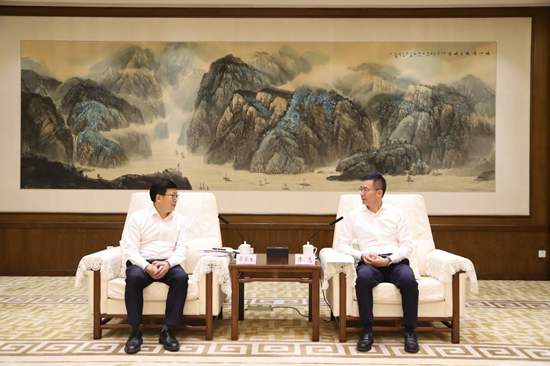 会谈后,廖家生赴省属国企长江产业集团访问交流,了解长江产业集团业务发展情况,并与长江产业集团党委书记、董事长黎苑楚围绕节能环保领域务实合作展开深入探讨。